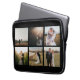 Modern laptop sleeve featuring a simple and minimal black design with a photo collage of six of your favourite wedding pictures. This elegant laptop sleeve is perfect for a newlywed bride.