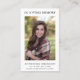 These custom personalized photo "In Loving Memory" prayer cards are simple and are easily customized with a favorite photo of your loved one. The prayer on the back is beautiful and will help friends and loved ones through their bereavement and bring comfort and solace to those who receive them. Order our Simple Photo Memorial Prayer Cards today and honor the memory of your loved one in a meaningful and personalized way.