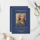 An elegant personalised photo order of service funeral memorial program. Design features a simple photo template with classic modern white typography on a blue background. Easy to customise text and photo. Our heartfelt condolences to you and family for your loss.