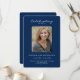 An elegant personalised photo order of service funeral memorial program. Design features a simple photo template with classic modern white typography on a blue background. Easy to customise text and photo. Our heartfelt condolences to you and family for your loss.