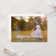 Modern girl graduation party invitation with "congratulations to our graduate" along with a single line of text for graduation details over your favourite full bleed horizontal photo. "Congratulations" is in an elegant white handwriting font. The backside has your personal message / event details. A simple design that makes your photo the main feature.