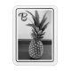 This magnet features a black and white photograph of a pineapple with a customisable single initial.