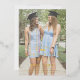 Elegant real gold foil double graduation party invitation, featuring a photograph of the grads, a white overaly and pressed gold foil text which can easily be customised.