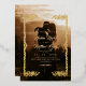 Modern stylish elegant photo wedding invitation with gold dust on with a gold ink pour effect (the gold is a digital effect, not real foil) and modern calligraphy. Classy and elegant, simple and modern invitation.