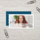 A simple design features a QR code business card template, with a simple photo, and a modern professional style, with a scannable barcode for a website or social media such as Instagram and Facebook, a minimalist blue, trendy chic design, with minimal contact details, and a blue background on the back, a photography picture business card.