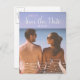 Simple "Save the Date" text in white on your custom photo background. Includes white dew drop pattern on bottom of image.