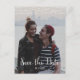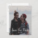 Simple "Save the Date" text in white on your custom photo background. Includes white dew drop pattern on top of image.