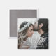 This simply chic photo wedding save the date fridge magnet has a warm, minimalist design. It features a lively modern Save the Date text above your first names and date and wedding location. This Save the Date script can't be altered. You can change the colour, size and font of any of the other text. Use the intuitive design tools and your favourite photo to make this stylish wedding save the date magnet uniquely yours. We also offer a similar design on this magnet type without the wedding location, for a simpler look. And please check our store for this design in flat card and postcard formats, as well as a selection of other stylish modern save the dates!