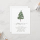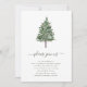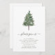 This simple and elegant holiday wedding invitation features a rustic pine tree illustrated in green watercolor, with trendy handwritten script on a clean white background. A minimalist look for your Christmas or winter wedding.