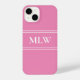 Simple Pink and White Monogrammed iPhone Case