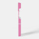 This pink iPhone case has three white letters in the centre. You can change the letters to display the correct monogram. Two white horizontal lines are above and below the initials.