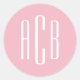 Simple Pink and White Three Letter Monogram Classic Round Sticker