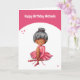 Cute and simple pink ballerina birthday card with an illustration of a black girl in her pink tutu preparing to dance. Illustrated and designed by Patricia Alvarez.