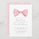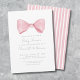 A cute and girly pink bow baby shower theme featuring an adorable baby pink watercolor bow. A simple and minimal classic baby shower look. Grey text in a mix of serif font and script typography. Celebrate the mum to be in style! You can change the font colours out to whatever you'd like. You can also change the background colour on the front and back. You can even change the colour of the white stripes that are on the back design. Simple Elegant Script Pink Bow Girl Baby Shower Theme Invitation With Pink White Stripes.