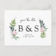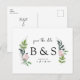Simple Monogram/Initials Wedding Foliage & Pink Floral Save the Date. Website. Postcard.