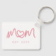 Simple Pink Script Heart Cute New Mum Established Keychain.