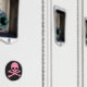 These graphic tees and other items are adorned with a simple pink skull and crossbones.