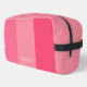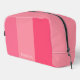 The vertical stripes are different shades of pink. White text is near the bottom for your name or monogram.