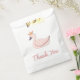 Cute swan party favour bags with an illustration of a pink princess swan with a crown and a beautiful font to say thank you to your guests. Illustrated and designed by Patricia Alvarez.