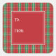 Simple Plaid Holiday Red and Green To From Square Sticker