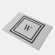 Simple, classic or modern, and stylish. Features 2 black stripe borders, an inner and outer border. Just personalise with your last name initial, or full monogram in the centre. For 3 initials, customise and pick the text number size 72 to reduce it to fit. On a masculine grey background, or customise and change to a darker grey, white, or any colour. Use eyedropper to seem more colour choices. Fits the small product only. For yourself, or makes a nice gift for a housewarming, or for as a wedding or bridal shower.