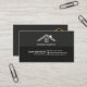 A simple design. Shades of grey. A monochrome. The card face is divided into two portions. At the upper grey portion, you have an abstract design of a roof top with your business name underneath. The black portion below houses all your other card details. A simple white line demarcates your name and job title at the left against your contact details at the right.