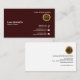 A simple retro design with a maroon coloured background. Your faux gold logo and business name sit at the top right corner. Directly underneath are all the business contacts, each with their respective buttons. Your name and job title are at the left wall of the card.