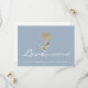 Simple, modern, minimalist, dusty blue change the date wedding card, with elegant gold rose flower drawing art.