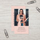 This business card features a professional photo for an event planner. The reverse side features the contact info and business name. You can customise the text size, font, to fit your own personal style. Replace this sample place holder photo with your own portrait orientation business card. A peach pink background on the front and back of the card.