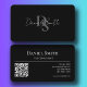 Simple Professional Monogram Initial QR code Black Business Card