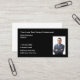 Simple photo portrait executive business cards design template created with a photo placeholder template you can replace with your own business portrait or graphic. Designed for a Realtor, Broker, Insurance Rep, or Healthcare industry executive.