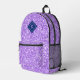 Beautiful purple and lavender tones sparkling glitter texture print. Customisable monogram. Custom monogram on the front panel.