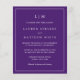 Simple budget wedding invitation featuring a modern yet elegant design with your two letter monogram at the top and your details surrounded by a thin border. All text is in white over a purple background. The fonts and background colours may be changed to any colours you wish by clicking the "customise" button. These cheap wedding invitations are great for a minimalist couple.
