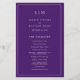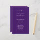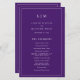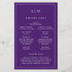 Simple Wedding Program featuring a modern yet elegant design with your two letter monogram at the top and your details surrounded by a thin border. All text is in white over a purple background and may be changed in the design editing tool. The front has your order of ceremony and the back has your wedding party and thank you message. A chic and stylish design that is great for a minimalist couple. These cheap wedding programs are printed on sheets of paper for a budget friendly option.