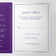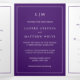 Simple all in one wedding invitation template with rsvp card and enclosure card attached, making this invitation suite convenient and budget friendly. The wedding invitation features a modern yet elegant design with your two letter monogram at the top and your details surrounded by a thin border. All design elements are in purple and may be changed to any colour you wish in the design editing tool. The RSVP postcard has your mailing address on the back and your guests simply cut off and mail back to you. NOTE: First class postage is required for the RSVP postcard. Postcard stamps will not be enough postage due to the size. A chic and stylish design that is great for a minimalist couple.