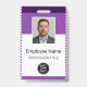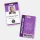 This professional employee ID badge is designed for easy identification and security within your organisation. Featuring a clean purple and white design, it offers ample space for employee photos, names, profession titles, and company logos. The reverse side includes essential return information and a barcode for efficient scanning. Its durable construction ensures it withstands daily wear and tear, making it a reliable choice for any business seeking a sophisticated and practical identification solution.