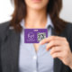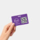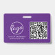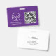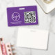 Custom ID name badge in a horizontal layout with your logo and QR code. Use the template to add each employee name and title. The backside has your contact information and instructions for returning if found. This simple yet professional design features all text in white over a royal purple background and may be changed to any colour you wish by clicking the "customise" button. This corporate style ID badge may be personalised for any type of business big or small.