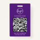 Custom ID name badge in a vertical layout with your logo and QR code. Use the template to add each employee name and title. The backside has your contact information and instructions for returning if found. This simple yet professional design features all text in white over a royal purple background and may be changed to any colour you wish by clicking the "customise" button. This corporate style ID badge may be personalised for any type of business big or small.