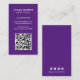 Modern vertical business card featuring a simple and minimalist style with your QR Code on the front and social media icons on the back. All design elements are in white over a purple background. A plain and minimal design that can be customised for any business professional.