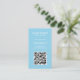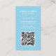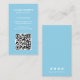 Modern vertical business card featuring a simple and minimalist style with your QR Code on the front and social media icons on the back. All design elements are in white over a light blue background. A plain and minimal design that can be customised for any business professional.
