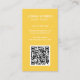 Modern vertical business card featuring a simple and minimalist style with your QR Code on the front and social media icons on the back. All design elements are in white over a yellow background. A plain and minimal design that can be customised for any business professional.