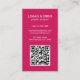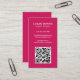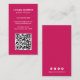Modern vertical business card featuring a simple and minimalist style with your QR Code on the front and social media icons on the back. All design elements are in white over a hot pink fuschia background. A plain and minimal design that can be customised for any business professional.