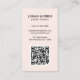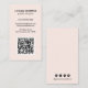 Modern vertical business card featuring a simple and minimalist style with your QR Code on the front and social media icons on the back. All design elements are in black over a blush pink background. A plain and minimal design that can be customised for any business professional.