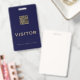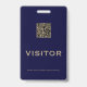 Keep your visitors and guests easily identified with this simple customisable QR visitor badge. The blue and gold design features a customisable QR code and text that reads "Visitor" in a classic font. The QR code makes it easy for guests to access important information about your facility or event. The text at the bottom reminds visitors to please return the badge before leaving. This badge is perfect for businesses, hospitals, schools, museums, attractions, and more.