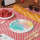 Simple rainbow watercolor splash paper plate