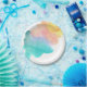 Has a nice rainbow colour watercolor splash on the paper plate.