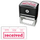 This basic, plain rubber stamp design features the messages "received" and a line where a date could be written. It might be used to track when a piece of mail or a document was received at the office of a business or some other organisation.
