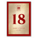 Simple Minimalist Red Rectangle Double Happiness On A Faux Matt Gold Foil Paper Background, Double Sided Chinese Wedding Table Number Card.
