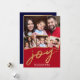 Wish them JOY this Christmas with this simple and elegant red and gold joy photo Christmas card featuring 5 of your family pictures -- 4 on the front and one on the back, and the sentiment "JOY" in elegant gold hand lettered script calligraphy, with your names and the year. This beautiful card will bring joy to their faces when they see all of yours!