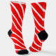 This Christmas pair of socks has red and white stripes. Diagonal stripes make up the simple pattern.